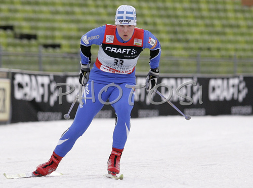 : Vesna Fabjan of Slovenia skiing in qualifications of first race of FIS Viessmann Tour de Ski. Women sprint race in Munich, Germany was, after cancelation of races in Nove Mesto, Czech, first race of FIS Viessmann Tour de Ski and was held in Olympic stadium in Munich, Germany on 31st of December 2006.