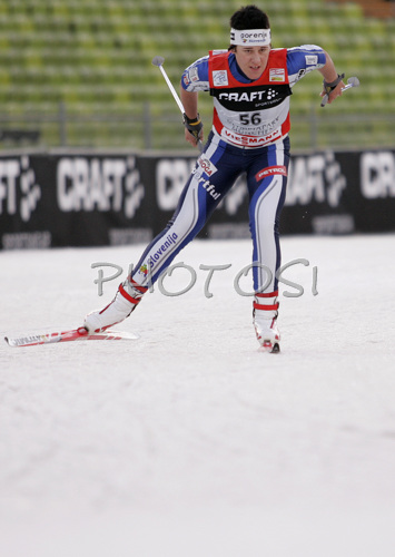 : Barbara Jezersek of Slovenia skiing in qualifications of first race of FIS Viessmann Tour de Ski. Women sprint race in Munich, Germany was, after cancelation of races in Nove Mesto, Czech, first race of FIS Viessmann Tour de Ski and was held in Olympic stadium in Munich, Germany on 31st of December 2006.