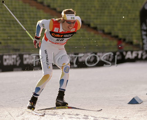 : Peter Larsson of Sweden skiing in qualifications of first race of FIS Viessmann Tour de Ski. Men sprint race in Munich, Germany was, after cancelation of races in Nove Mesto, Czech, first race of FIS Viessmann Tour de Ski and was held in Olympic stadium in Munich, Germany on 31st of December 2006.
