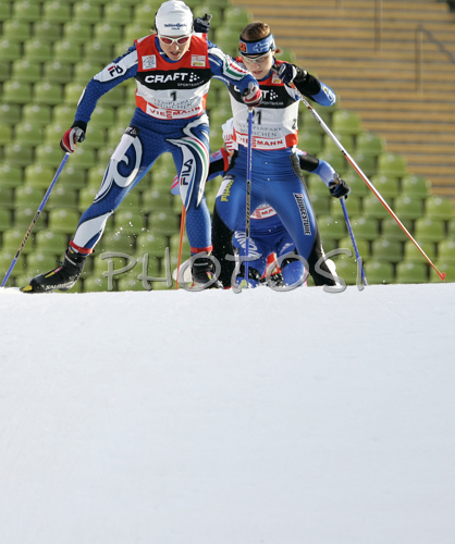: Arianna Follis of Italy leading group in finals of first race of FIS Viessmann Tour de Ski. Women sprint race in Munich, Germany was, after cancelation of races in Nove Mesto, Czech, first race of FIS Viessmann Tour de Ski and was held in Olympic stadium in Munich, Germany on 31st of December 2006.