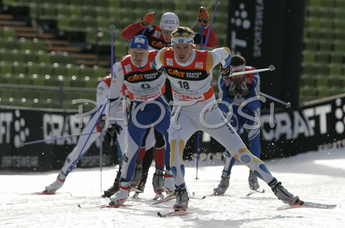 : Bjoern Lind of Sweden leading group in quarter finals of first race of FIS Viessmann Tour de Ski. Men sprint race in Munich, Germany was, after cancelation of races in Nove Mesto, Czech, first race of FIS Viessmann Tour de Ski and was held in Olympic stadium in Munich, Germany on 31st of December 2006.