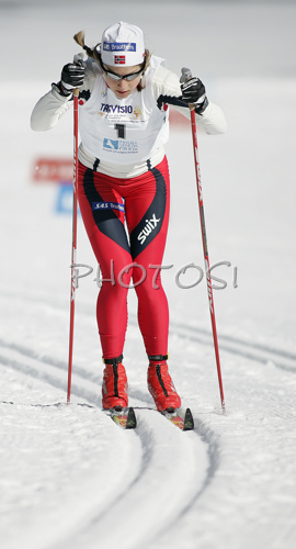: Astrid Jacobsen of Norway skiing in qualifications for Women Sprint race of Junior Nordic skiing World Championships in Tarvisio, Italy. Qualifications for Women Sprint race of Junior Nordic skiing World Championships in Tarvisio, Italy were held on 12th of March 2007 in Fusine, Italy. Due warm weather and lack of snow, cross country skiing races of Junior Nordic skiing World Championships 2007 were moved from Tarvisio, Italy to Fusine, Italy.