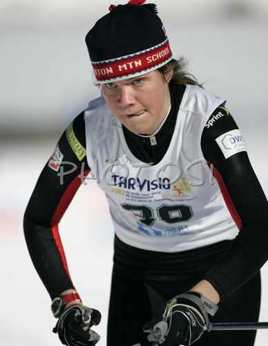 Tarvisio ,Italy - 12.03.2007 : Parker Tyler of USA skiing in qualifications for Women Sprint race of Junior Nordic skiing World Championships in Tarvisio, Italy. Qualifications for Women Sprint race of Junior Nordic skiing World Championships in Tarvisio, Italy were held on 12th of March 2007 in Fusine, Italy. Due warm weather and lack of snow, cross country skiing races of Junior Nordic skiing World Championships 2007 were moved from Tarvisio, Italy to Fusine, Italy. Photo by: Primoz Jeroncic/PhotoSI