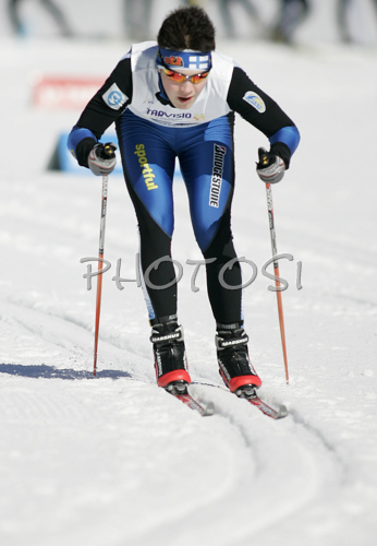 Tarvisio ,Italy - 12.03.2007 : Harri Suojaervi of Finland skiing in qualifications for Men Sprint race of Junior Nordic skiing World Championships in Tarvisio, Italy. Qualifications for Men Sprint race of Junior Nordic skiing World Championships in Tarvisio, Italy were held on 12th of March 2007 in Fusine, Italy. Due warm weather and lack of snow, cross country skiing races of Junior Nordic skiing World Championships 2007 were moved from Tarvisio, Italy to Fusine, Italy. Photo by: Primoz Jeroncic/PhotoSI