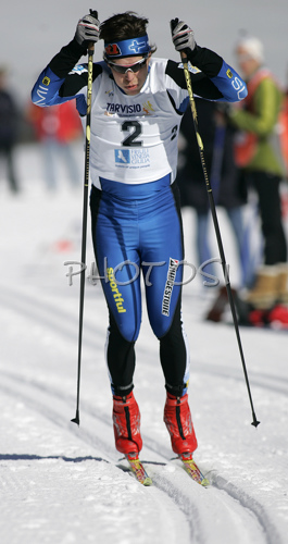 : Kalle Lassila of Finland skiing in qualifications for Men Under23 Sprint race of Junior Nordic skiing World Championships in Tarvisio, Italy. Qualifications for Men Sprint race of Junior Nordic skiing World Championships in Tarvisio, Italy were held on 13th of March 2007 in Fusine, Italy. Due warm weather and lack of snow, cross country skiing races of Junior Nordic skiing World Championships 2007 were moved from Tarvisio, Italy to Fusine, Italy.
