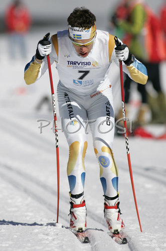 Tarvisio ,Italy - 13.03.2007 : Marcus Hellner of Sweden skiing in qualifications for Men Under23 Sprint race of Junior Nordic skiing World Championships in Tarvisio, Italy. Qualifications for Men Sprint race of Junior Nordic skiing World Championships in Tarvisio, Italy were held on 13th of March 2007 in Fusine, Italy. Due warm weather and lack of snow, cross country skiing races of Junior Nordic skiing World Championships 2007 were moved from Tarvisio, Italy to Fusine, Italy. Photo by: Primoz Jeroncic/PhotoSI