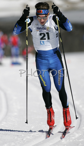 Tarvisio ,Italy - 13.03.2007 : Ville Verkama of Finland skiing in qualifications for Men Under23 Sprint race of Junior Nordic skiing World Championships in Tarvisio, Italy. Qualifications for Men Sprint race of Junior Nordic skiing World Championships in Tarvisio, Italy were held on 13th of March 2007 in Fusine, Italy. Due warm weather and lack of snow, cross country skiing races of Junior Nordic skiing World Championships 2007 were moved from Tarvisio, Italy to Fusine, Italy. Photo by: Primoz Jeroncic/PhotoSI