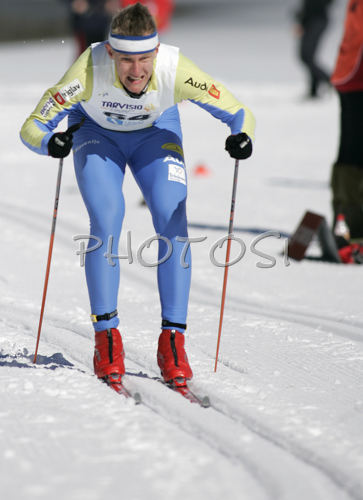: Anze Repansek of Slovenia skiing in qualifications for Men Under23 Sprint race of Junior Nordic skiing World Championships in Tarvisio, Italy. Qualifications for Men Sprint race of Junior Nordic skiing World Championships in Tarvisio, Italy were held on 13th of March 2007 in Fusine, Italy. Due warm weather and lack of snow, cross country skiing races of Junior Nordic skiing World Championships 2007 were moved from Tarvisio, Italy to Fusine, Italy.