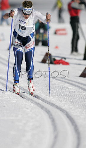 : Barbara Jezersek of Slovenia skiing in qualifications for Women Under23 Sprint race of Junior Nordic skiing World Championships in Tarvisio, Italy. Qualifications for Women Sprint race of Junior Nordic skiing World Championships in Tarvisio, Italy were held on 13th of March 2007 in Fusine, Italy. Due warm weather and lack of snow, cross country skiing races of Junior Nordic skiing World Championships 2007 were moved from Tarvisio, Italy to Fusine, Italy.