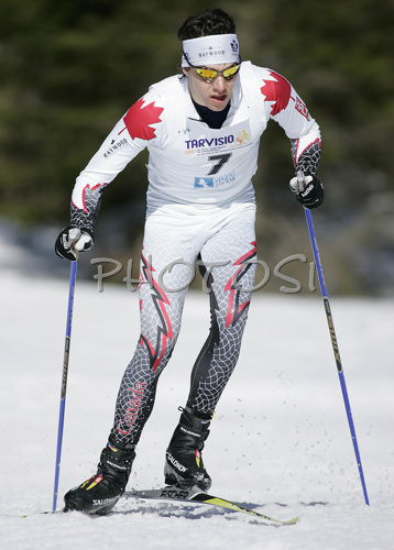 Tarvisio ,Italy - 14.03.2007 : Third placed Alex Harvey of Canada skiing in Men 10km freestyle race of Junior Nordic skiing World Championships in Tarvisio, Italy. Men 10km freestyle race of Junior Nordic skiing World Championships in Tarvisio, Italy was held on 14th of March 2007 in Fusine, Italy. Due warm weather and lack of snow, cross country skiing races of Junior Nordic skiing World Championships 2007 were moved from Tarvisio, Italy to Fusine, Italy. Photo by: Primoz Jeroncic/PhotoSI