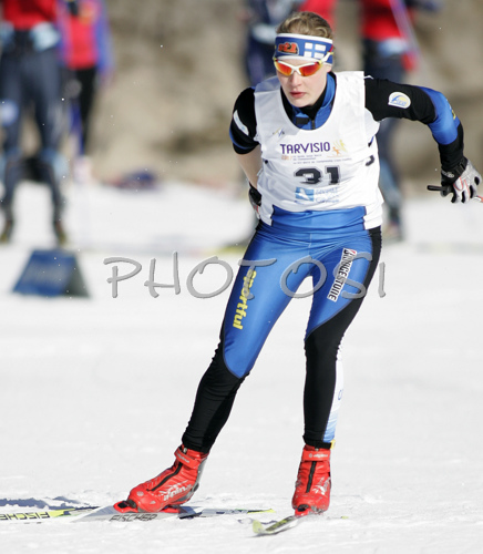 Tarvisio ,Italy - 14.03.2007 : Anne Kyllonen of Finland skiing in Women 5km freestyle race of Junior Nordic skiing World Championships in Tarvisio, Italy. Women 5km freestyle race of Junior Nordic skiing World Championships in Tarvisio, Italy was held on 14th of March 2007 in Fusine, Italy. Due warm weather and lack of snow, cross country skiing races of Junior Nordic skiing World Championships 2007 were moved from Tarvisio, Italy to Fusine, Italy. Photo by: Primoz Jeroncic/PhotoSI