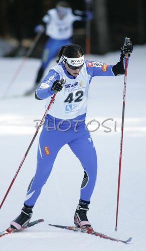 : Katja Visnar of Slovenia skiing in Women 10km freestyle race of Under23 Nordic skiing World Championships in Tarvisio, Italy. Women 10km freestyle race of Junior Nordic skiing World Championships in Tarvisio, Italy was held on 15th of March 2007 in Fusine, Italy. Due warm weather and lack of snow, cross country skiing races of Junior Nordic skiing World Championships 2007 were moved from Tarvisio, Italy to Fusine, Italy.