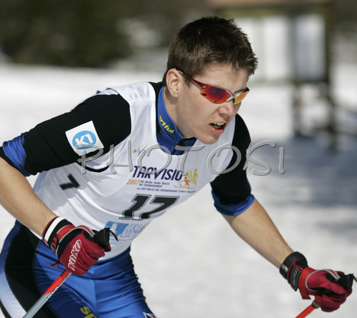 Tarvisio ,Italy - 15.03.2007 : Thomas Ramstedt of Finland skiing in Men 15km freestyle race of Under23 Nordic skiing World Championships in Tarvisio, Italy. Men 15km freestyle race of Under23 Nordic skiing World Championships in Tarvisio, Italy was held on 15th of March 2007 in Fusine, Italy. Due warm weather and lack of snow, cross country skiing races of Junior Nordic skiing World Championships 2007 were moved from Tarvisio, Italy to Fusine, Italy. Photo by: Primoz Jeroncic/PhotoSI