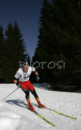 : Harald Wurm of Austria skiing in Men 15km freestyle race of Under23 Nordic skiing World Championships in Tarvisio, Italy. Men 15km freestyle race of Under23 Nordic skiing World Championships in Tarvisio, Italy was held on 15th of March 2007 in Fusine, Italy. Due warm weather and lack of snow, cross country skiing races of Junior Nordic skiing World Championships 2007 were moved from Tarvisio, Italy to Fusine, Italy.