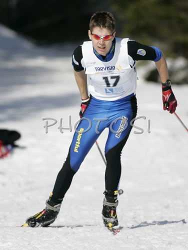 Tarvisio ,Italy - 15.03.2007 : Thomas Ramstedt of Finland skiing in Men 15km freestyle race of Under23 Nordic skiing World Championships in Tarvisio, Italy. Men 15km freestyle race of Under23 Nordic skiing World Championships in Tarvisio, Italy was held on 15th of March 2007 in Fusine, Italy. Due warm weather and lack of snow, cross country skiing races of Junior Nordic skiing World Championships 2007 were moved from Tarvisio, Italy to Fusine, Italy. Photo by: Primoz Jeroncic/PhotoSI