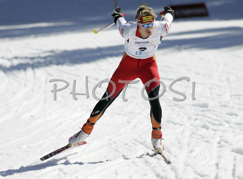 : Marco Pichlmayer of Austria skiing in Nordic combined relay race of Junior Nordic skiing World Championships in Tarvisio, Italy. Nordic combined relay race of Junior Nordic skiing World Championships in Tarvisio, Italy was held on 16th of March 2007 in Fusine, Italy. Due warm weather and lack of snow, cross country skiing races of Junior Nordic skiing World Championships 2007 were moved from Tarvisio, Italy to Fusine, Italy.