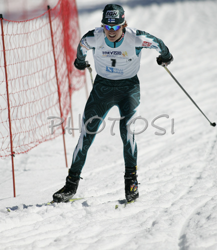 : Lauri Asikainen of Finland skiing in Nordic combined relay race of Junior Nordic skiing World Championships in Tarvisio, Italy. Nordic combined relay race of Junior Nordic skiing World Championships in Tarvisio, Italy was held on 16th of March 2007 in Fusine, Italy. Due warm weather and lack of snow, cross country skiing races of Junior Nordic skiing World Championships 2007 were moved from Tarvisio, Italy to Fusine, Italy.