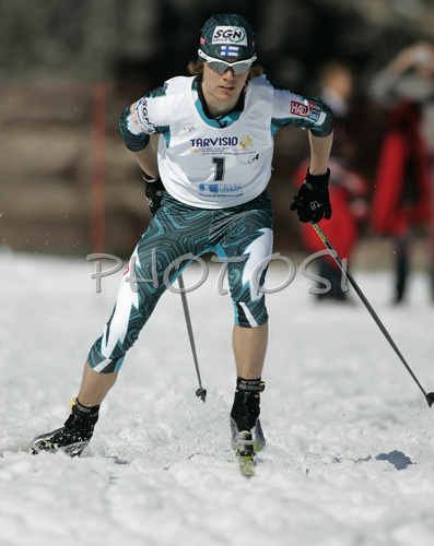 : Anssi Koivuranta of Finland skiing in Nordic combined relay race of Junior Nordic skiing World Championships in Tarvisio, Italy. Nordic combined relay race of Junior Nordic skiing World Championships in Tarvisio, Italy was held on 16th of March 2007 in Fusine, Italy. Due warm weather and lack of snow, cross country skiing races of Junior Nordic skiing World Championships 2007 were moved from Tarvisio, Italy to Fusine, Italy.