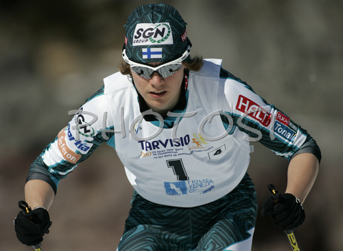 : Anssi Koivuranta of Finland skiing in Nordic combined relay race of Junior Nordic skiing World Championships in Tarvisio, Italy. Nordic combined relay race of Junior Nordic skiing World Championships in Tarvisio, Italy was held on 16th of March 2007 in Fusine, Italy. Due warm weather and lack of snow, cross country skiing races of Junior Nordic skiing World Championships 2007 were moved from Tarvisio, Italy to Fusine, Italy.