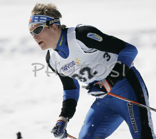 : Matias Strandvall of Finland skiing in Men 15+15km pursuit race of Under23 Nordic skiing World Championships in Tarvisio, Italy. Men 15+15km pursuit race of Junior Nordic skiing World Championships in Tarvisio, Italy was held on 17th of March 2007 in Fusine, Italy. Due warm weather and lack of snow, cross country skiing races of Junior Nordic skiing World Championships 2007 were moved from Tarvisio, Italy to Fusine, Italy.