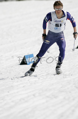 : Michael Sinnott of USA skiing in Men 15+15km pursuit race of Under23 Nordic skiing World Championships in Tarvisio, Italy. Men 15+15km pursuit race of Junior Nordic skiing World Championships in Tarvisio, Italy was held on 17th of March 2007 in Fusine, Italy. Due warm weather and lack of snow, cross country skiing races of Junior Nordic skiing World Championships 2007 were moved from Tarvisio, Italy to Fusine, Italy.
