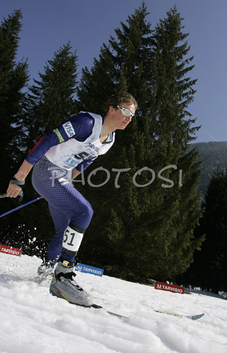 : Michael Sinnott of USA skiing in Men 15+15km pursuit race of Under23 Nordic skiing World Championships in Tarvisio, Italy. Men 15+15km pursuit race of Junior Nordic skiing World Championships in Tarvisio, Italy was held on 17th of March 2007 in Fusine, Italy. Due warm weather and lack of snow, cross country skiing races of Junior Nordic skiing World Championships 2007 were moved from Tarvisio, Italy to Fusine, Italy.