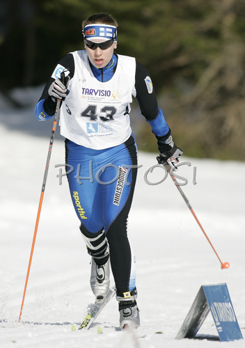 Tarvisio ,Italy - 17.03.2007 : Maija Hakala of Finland skiing in Women 7.5+7.5km pursuit race of Under23 Nordic skiing World Championships in Tarvisio, Italy. Women 7.5+7.5km pursuit race of Junior Nordic skiing World Championships in Tarvisio, Italy was held on 17th of March 2007 in Fusine, Italy. Due warm weather and lack of snow, cross country skiing races of Junior Nordic skiing World Championships 2007 were moved from Tarvisio, Italy to Fusine, Italy. Photo by: Primoz Jeroncic/PhotoSI