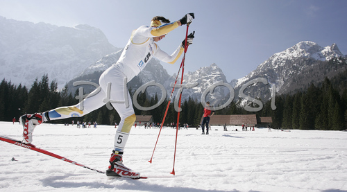 : Marcus Hellner of Sweden skiing in Men 15+15km pursuit race of Under23 Nordic skiing World Championships in Tarvisio, Italy. Men 15+15km pursuit race of Junior Nordic skiing World Championships in Tarvisio, Italy was held on 17th of March 2007 in Fusine, Italy. Due warm weather and lack of snow, cross country skiing races of Junior Nordic skiing World Championships 2007 were moved from Tarvisio, Italy to Fusine, Italy.