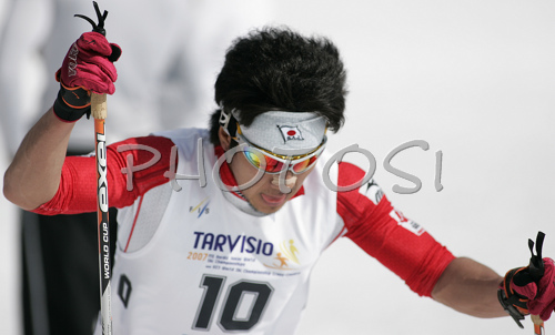 Tarvisio ,Italy - 17.03.2007 : Nobu Naruse of Japan skiing in Men 15+15km pursuit race of Under23 Nordic skiing World Championships in Tarvisio, Italy. Men 15+15km pursuit race of Junior Nordic skiing World Championships in Tarvisio, Italy was held on 17th of March 2007 in Fusine, Italy. Due warm weather and lack of snow, cross country skiing races of Junior Nordic skiing World Championships 2007 were moved from Tarvisio, Italy to Fusine, Italy. Photo by: Primoz Jeroncic/PhotoSI