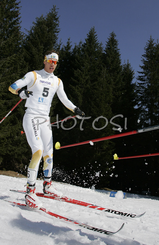 : Marcus Hellner of Sweden skiing in Men 15+15km pursuit race of Under23 Nordic skiing World Championships in Tarvisio, Italy. Men 15+15km pursuit race of Junior Nordic skiing World Championships in Tarvisio, Italy was held on 17th of March 2007 in Fusine, Italy. Due warm weather and lack of snow, cross country skiing races of Junior Nordic skiing World Championships 2007 were moved from Tarvisio, Italy to Fusine, Italy.