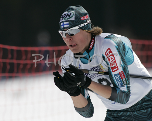 : Anssi Koivuranta of Finland skiing in Nordic combined sprint race of Junior Nordic skiing World Championships in Tarvisio, Italy. Nordic combined sprint race of Junior Nordic skiing World Championships in Tarvisio, Italy was held on 18th of March 2007 in Fusine, Italy. Due warm weather and lack of snow, cross country skiing races of Junior Nordic skiing World Championships 2007 were moved from Tarvisio, Italy to Fusine, Italy.