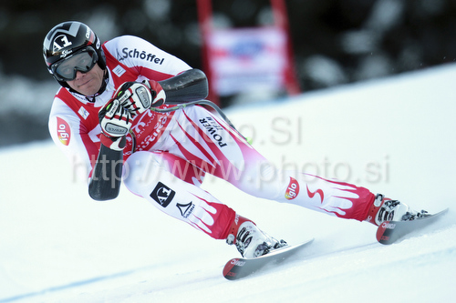 : Michael Walchhofer of Austria speeds down the course during the mens alpine ski World Cup Super-G race in Val Gardena, Italy, Friday, December 18, 2009.