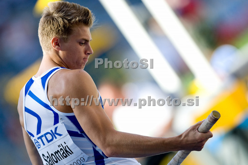 : Eemeli Salomaki of Finland competes in the mens pole vault qualifying event during day six of the 12th IAAF World Athletics Championships at the Olympic Stadium on August 20, 2009 in Berlin, Germany.