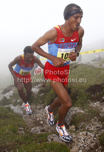 : Teklay Weldemariam (R) and his teammate Samson Gashazghi of Eritrea (L) during 26th World mountain running championships. World mountain running championships was held in Kamnik and Velika Planina, Slovenia, on 5th of September 2010.