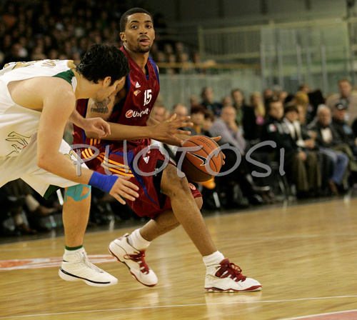 Ljubljana ,Slovenia - 06.11.2008 : Allan Ray (no.15) of Lottomatica Roma (R) and Saso Ozbolt (no.31) of Union Olimpija (L) during match of Basketball Euroleague between Union Olimpija, Ljubljana, Slovenia and Lottomatica Roma, Italy. Match between Union Olimpija and Lottomatica Roma was played on 6th of November 2008 in Tivoli Arena in Ljubljana, Slovenia. Photo by: Primoz Jeroncic
