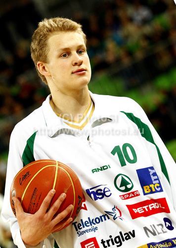 : Sasu Salin (no.10) of Union Olimpija before match of NLB Adriatic basketball League between Union Olimpija and Partizan. Match of NLB Adriatic basketball League between Union Olimpija, Ljubljana, Slovenia and Partizan, Belgrade, Serbia was played in Stozice Arena, Ljubljana, Slovenia, on Sunday, 31st of October 2010.