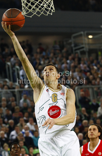 : Vlado Ilievski (no.6) of Union Olimpija during Euroleague basketball match of 7th round between Union Olimpija and Armani jeans Milano. Match between Union Olimpija, Ljubljana, Slovenia, and Armani jeans Milano, Italy, was played in Stozice arena in Ljubljana, Slovenia, on Thursday, 2nd of December 2010.