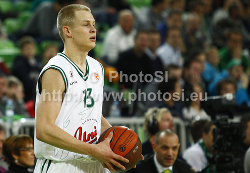 Ljubljana ,Slovenia - 01.12.2011 : Sasu Salin (no.13) of Union Olimpija during match of 7th round of Turkish Airlines Basketball Euroleague between Union Olimpija, Ljubljana, Slovenia and Montepaschi Siena, Italy. Match of Turkish Airlines Basketball Euroleague between Union Olimpija and Montepaschi Siena was played in Stozice Arena, Ljubljana, Slovenia, on Thursday, 1st of December 2011. Photo by: Primoz Jeroncic