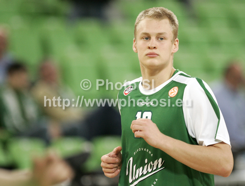 : Sasu Salin (no.10) of Union Olimpija during warmup before start of Turkish Airlines Euroleague basketball match of second round between Union Olimpija, Ljubljana, Slovenia and Fenerbahce Ulker, Istanbul, Turkey. Match between Union Olimpija and Fenerbahce Ulker was played in in Stozice Arena in Ljubljana, Slovenia, on Friday, 19th of October 2012.