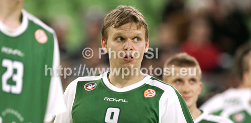 : Teemu Rannikko (no.9) of Union Olimpija during warmup before start of Turkish Airlines Euroleague basketball match of second round between Union Olimpija, Ljubljana, Slovenia and Fenerbahce Ulker, Istanbul, Turkey. Match between Union Olimpija and Fenerbahce Ulker was played in in Stozice Arena in Ljubljana, Slovenia, on Friday, 19th of October 2012.