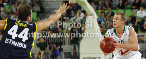 : Sasu Salin (no.10) of Union Olimpija during Turkish Airlines Euroleague basketball match of second round between Union Olimpija, Ljubljana, Slovenia and Fenerbahce Ulker, Istanbul, Turkey. Match between Union Olimpija and Fenerbahce Ulker was played in in Stozice Arena in Ljubljana, Slovenia, on Friday, 19th of October 2012.
