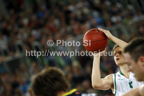 : Teemu Rannikko (no.9) of Union Olimpija during Turkish Airlines Euroleague basketball match of second round between Union Olimpija, Ljubljana, Slovenia and Fenerbahce Ulker, Istanbul, Turkey. Match between Union Olimpija and Fenerbahce Ulker was played in in Stozice Arena in Ljubljana, Slovenia, on Friday, 19th of October 2012.