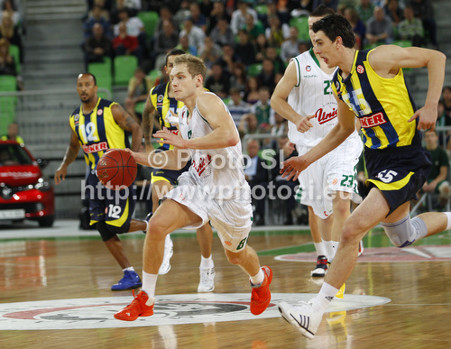 : Jaka Blazic (no.8) of Union Olimpija during Turkish Airlines Euroleague basketball match of second round between Union Olimpija, Ljubljana, Slovenia and Fenerbahce Ulker, Istanbul, Turkey. Match between Union Olimpija and Fenerbahce Ulker was played in in Stozice Arena in Ljubljana, Slovenia, on Friday, 19th of October 2012.