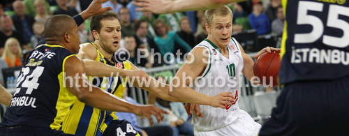 : Sasu Salin (no.10) of Union Olimpija during Turkish Airlines Euroleague basketball match of second round between Union Olimpija, Ljubljana, Slovenia and Fenerbahce Ulker, Istanbul, Turkey. Match between Union Olimpija and Fenerbahce Ulker was played in in Stozice Arena in Ljubljana, Slovenia, on Friday, 19th of October 2012.