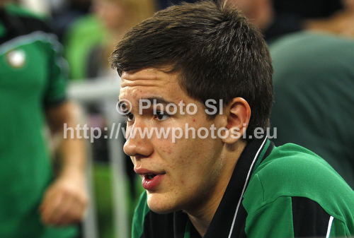 : Emir Sulejmanovic of Union Olimpija observing match from the bench during Turkish Airlines Euroleague basketball match of second round between Union Olimpija, Ljubljana, Slovenia and Fenerbahce Ulker, Istanbul, Turkey. Match between Union Olimpija and Fenerbahce Ulker was played in in Stozice Arena in Ljubljana, Slovenia, on Friday, 19th of October 2012.