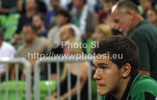 : Emir Sulejmanovic of Union Olimpija observing match from the bench during Turkish Airlines Euroleague basketball match of second round between Union Olimpija, Ljubljana, Slovenia and Fenerbahce Ulker, Istanbul, Turkey. Match between Union Olimpija and Fenerbahce Ulker was played in in Stozice Arena in Ljubljana, Slovenia, on Friday, 19th of October 2012.