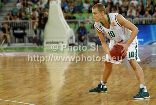 : Sasu Salin (no.10) of Union Olimpija during Turkish Airlines Euroleague basketball match of second round between Union Olimpija, Ljubljana, Slovenia and Fenerbahce Ulker, Istanbul, Turkey. Match between Union Olimpija and Fenerbahce Ulker was played in in Stozice Arena in Ljubljana, Slovenia, on Friday, 19th of October 2012.