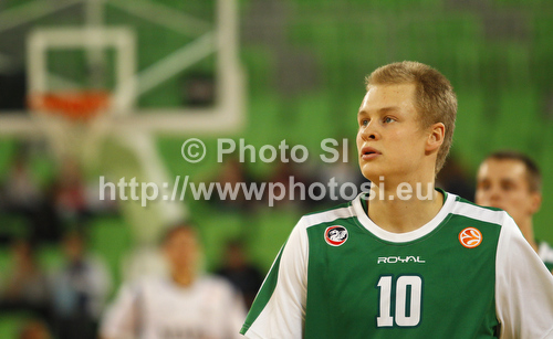 : Sasu Salin (no.10) of Union Olimpija warming up before Turkish Airlines Euroleague basketball match of fifth round between Union Olimpija, Ljubljana, Slovenia and Real Madrid, Spain. Match between Union Olimpija and Real Madrid was played in in Stozice Arena in Ljubljana, Slovenia, on Friday, 9th of November 2012.