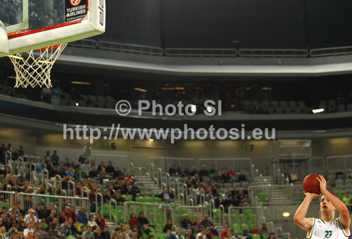 : Alen Omic (no.23) of Union Olimpija throwing free throws during Turkish Airlines Euroleague basketball match of sixth round between Union Olimpija, Ljubljana, Slovenia and Mapooro Cantu, Italy. Match between Union Olimpija and Mapooro Cantu was played in in Stozice Arena in Ljubljana, Slovenia, on Thursday, 15th of November 2012.