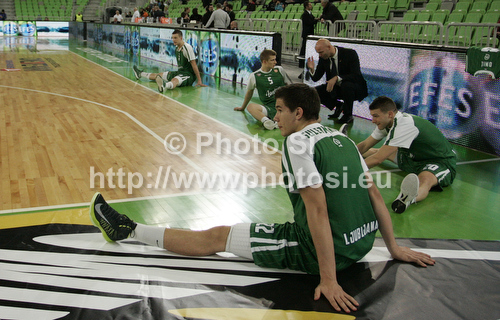 : Emir Sulejmanovic (no.22) of Union Olimpija warming up before Turkish Airlines Euroleague basketball match of sixth round between Union Olimpija, Ljubljana, Slovenia and BC Khimki Moscow, Russia. Match between Union Olimpija and BC Khimki Moscow was played in in Stozice Arena in Ljubljana, Slovenia, on Friday, 7th of December 2012.